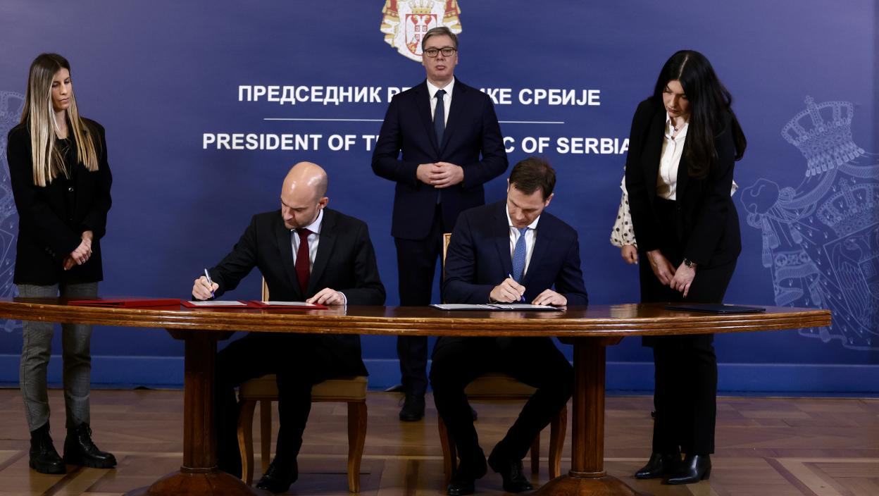 Zajedničku izjavu i Memorandum su, u prisustvu predsednika Srbije Aleksandra Vučića, potpisali prvi potpredsednik Vlade i ministar finansija Srbije Siniša Mali, ministarka građevinarstva, saobraćaja i infrastrukture Aleksandra Sofronijević i ministar za Evropu i spoljne poslove Francuske Žan-Noel Baro.