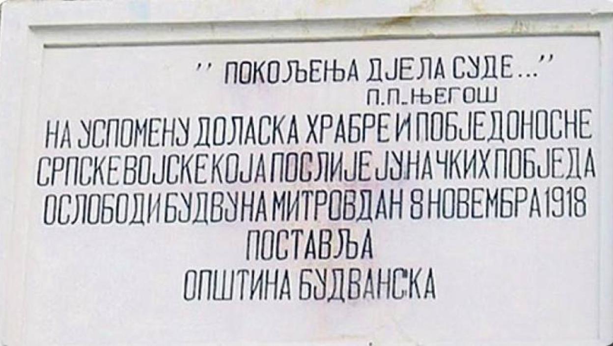 Tablu je 1931. godine u znak oslobođenja Budve postavila budvanska opština.