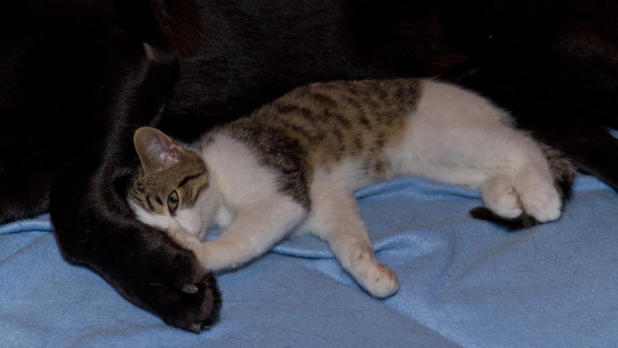 Kada se vlasnik ova dva preslatka ljubimca vratio kući, zatekao je macu šćućurenu i zavučenu ispod šape psa cimera. Napolju je besnela oluja. Kada je ušao u dnevnu sobu, ostao je bez daha kada je video kako se vole i čuvaju Tost (mačka) i Tera (pas).