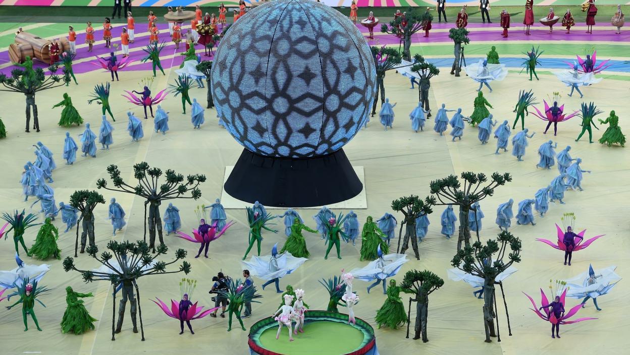 Oranizatori su se potrudili da plesom i traznobojnim kostimima pokažu sve raznolikosti Brazila. Himnu ovog Mundijala na oduševljenje publike kako je i najavljeno otpevali su Dženifer Lopez, Pit Bul i domaća zvezda Klaudija Leite.