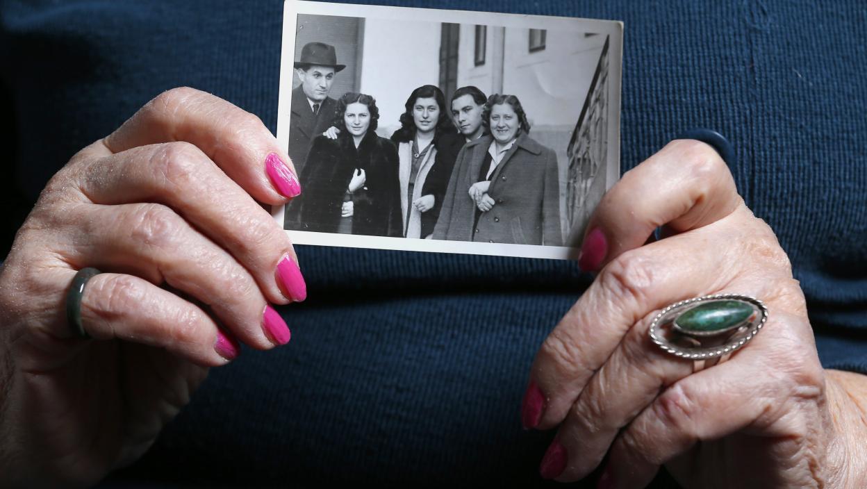 Eržbet Brodt (89), drži sliku njene porodice, koja je ubijena u logoru kada je ona imala 17 godina. Seća se putovanja do logora, bolesti i užasne smrti koje je videla tamo.