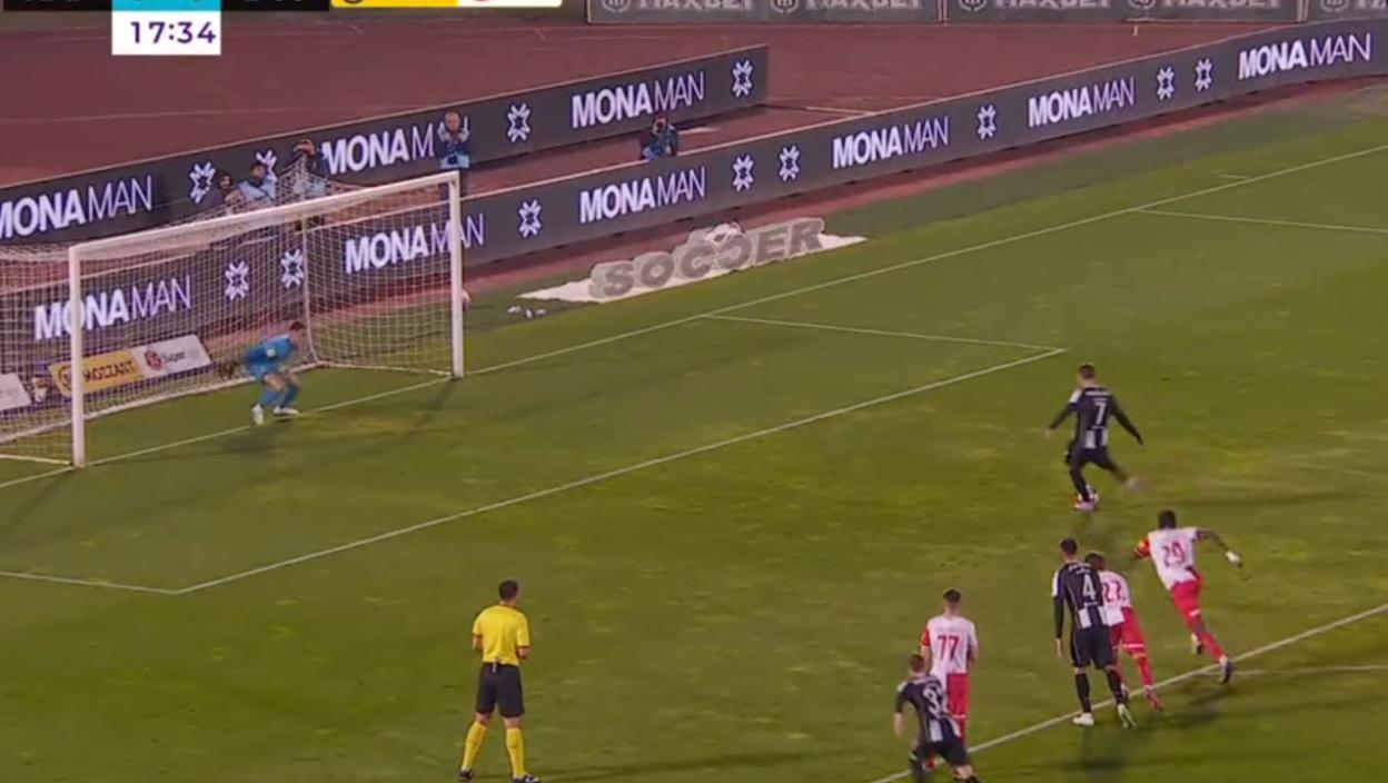 Posle odlične akcije i prodora Trifunovića, Kolarević je bio nespretan i napravio je prekršaj nad Dragojevićem pa su crno-beli dobili penal. Glavni arbitar meča nije dosudio prvobitno kazneni udarac, ali nakon reakcije VAR-a je doneo tu odluku.