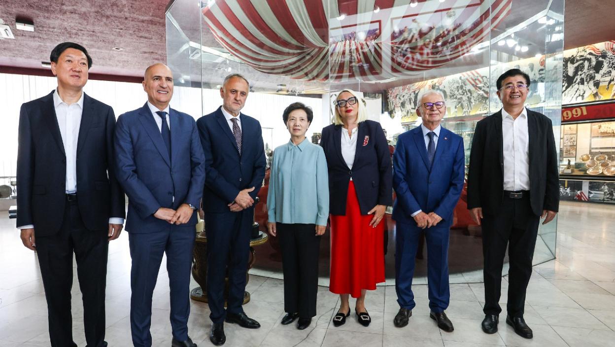 - Čelnici našeg kluba - predsednik Svetozar Mijailović, sportski direktor Mitar Mrkela, direktor Omladinske škole Nikola Jelić i direktor poslovnog razvoja Stefan Mrlješ, sastali su se sa kineskom delegacijom na čelu sa potpredsednicom kineske Vlade Šen Đikin, ministrom za sport Gao Đidanom, direktorkom Fudbalskog saveza Kine Song Kai i zamenikom generalnog sekretara državnog saveta Liu Đuhui - navodi se na zvaničnom sajtu Crvene zvezde. - Doček delegacije, koju je činilo još 14 zvaničnika Kine, uveličan je u Muzeju FK Crvena zvezda, gde su imali priliku da saznaju više o istoriji kluba i značajnim sportskim dostignućima. Nakon obilaska usledilo je fotografisanje i razmena poklona sa čelnicima našeg kluba, dok je zvanični deo sastanka upriličen u svečanoj sali.