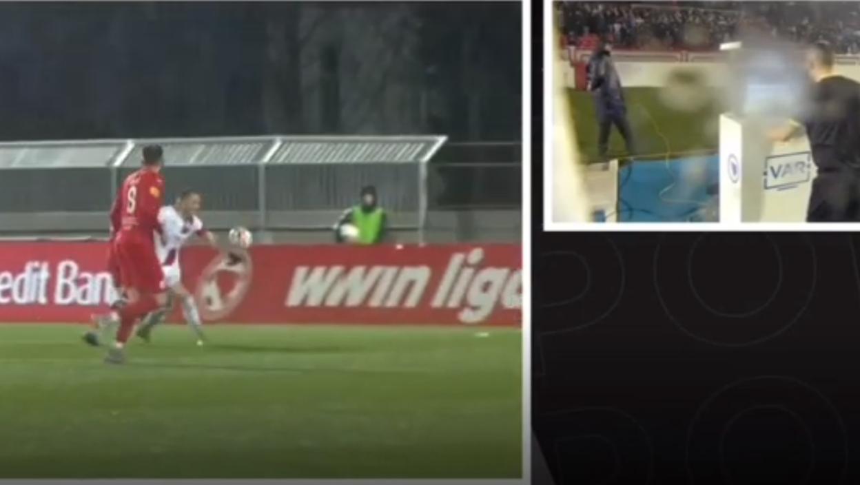 Glavni sudija Frano Jelić otišao je da pregleda snimak na VAR monitoru, a na njoj se zaista videlo da je Bilbija loptu primio rukom.