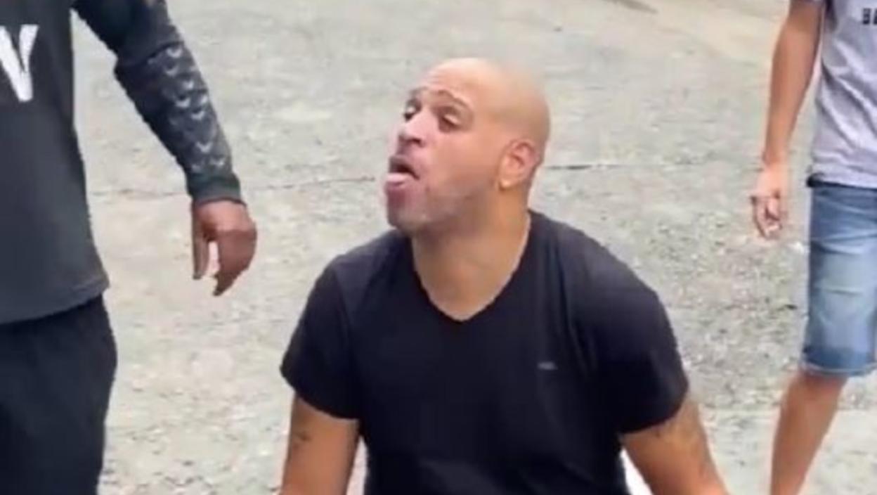 U pitanju je legendarni brazilski fudbaler Adriano, koji je sada "uhvaćen" kako pijan u Brazilu šeta ulicama, sa pivom i cigaretom u rukama - dok prolaznici zastaju da se slikaju sa njim.
