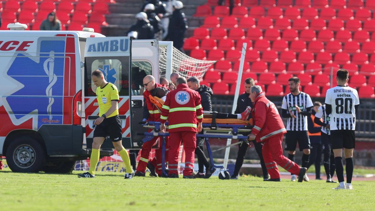 Okupili su se fudbaleri i jednog i drugog tima oko Zubairua, prekid je trajao nešto više od pet minuta. Krilni igrač Partizana ispraćen je aplauzom.