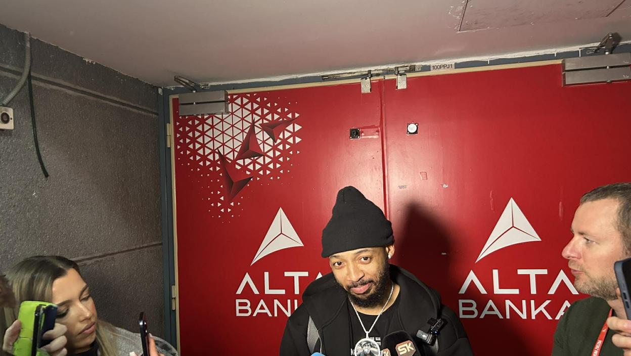 - Sigurno. Samo da pokušamo da nastavimo da pobeđujemo. Hm, kao što rekoh, mi smo tim za koji mislim da počinjemo da se ponosimo time što timovi treba da dođu i hm, znate, izvuku pobedu protiv nas. Znate, znam da nam dolazi i Žalgiris koji je, znate, koji je u trci za plej-of, tako da mislim da samo pokušavamo svima da otežamo. I takođe mislim da svi mi samo želimo da se takmičimo i pobeđujemo.