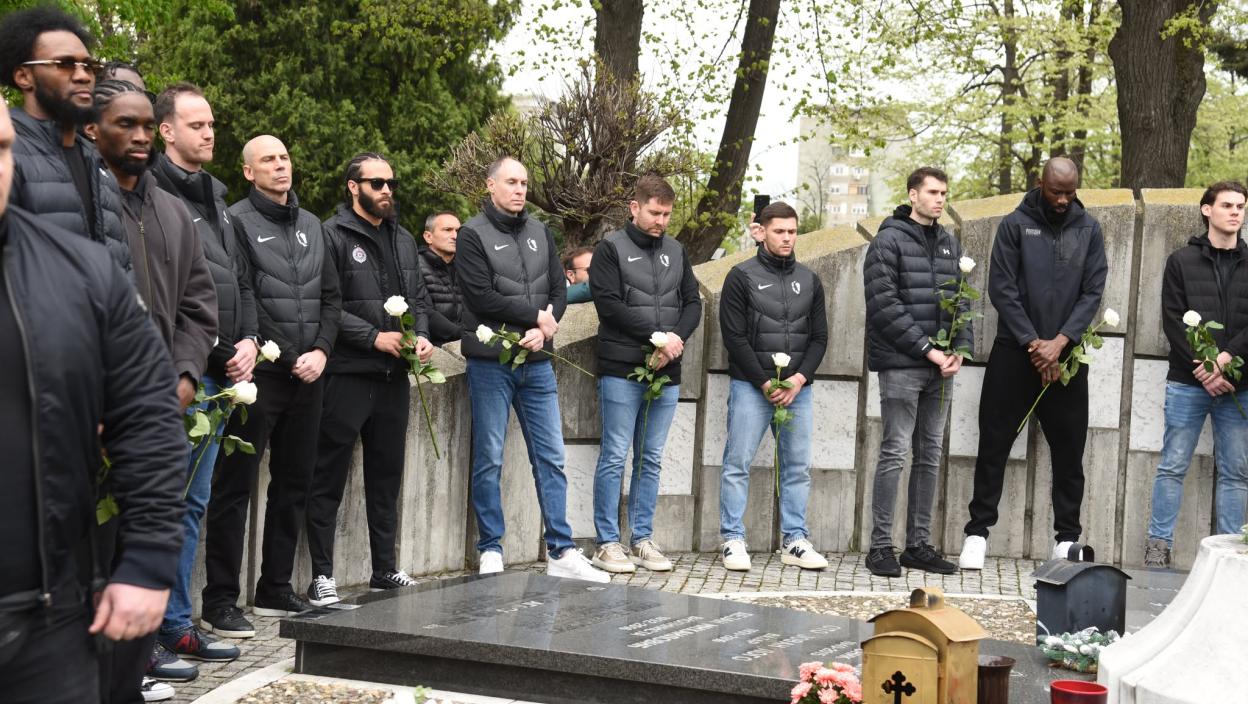 Na kraju sahrane aktuelni košarkaši Partizana prišli su grobu i svaki je ostavio po cvet.