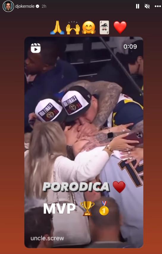 Đoković je na svom Instagram profilu podelio "stori" sa videom završnice četvrte utakmice protiv Lejkersa uz dve reči - "Porodica" i "MVP".