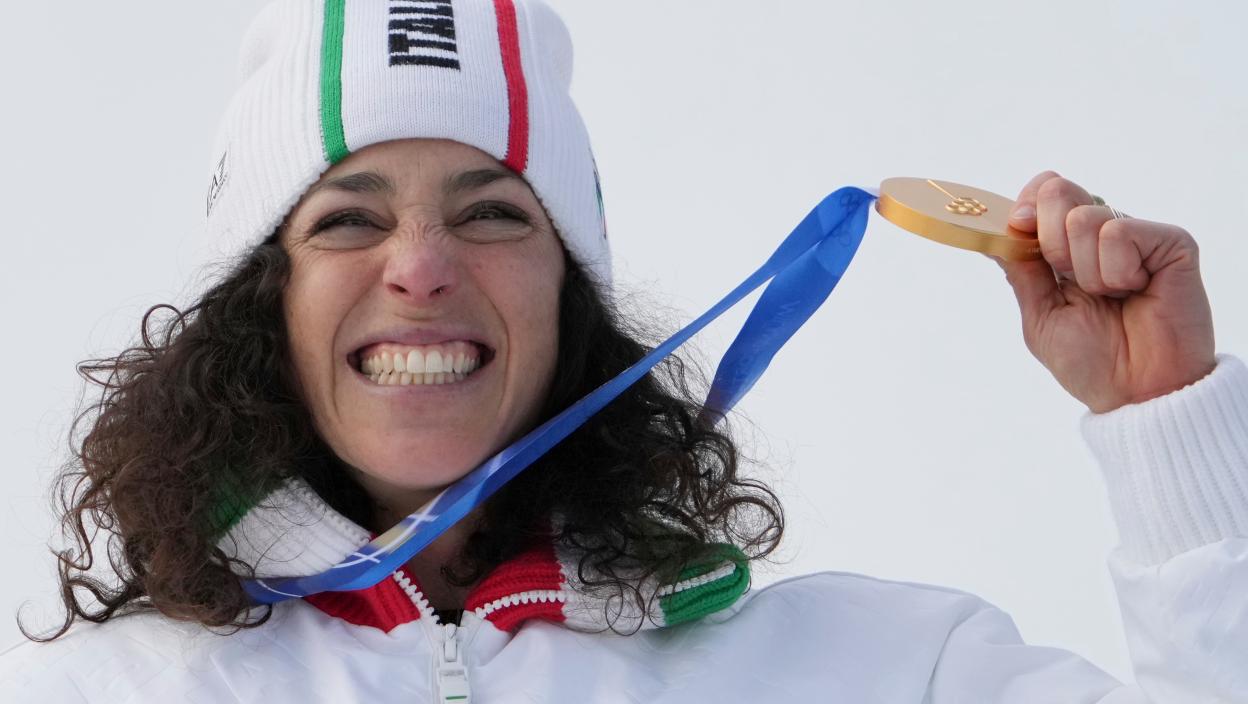 Brinjone je do pobede na stazi u Kortini d'Ampecu stigla u vremenu 1:23.41. Italijanka je danas stigla do četvrte medalje u karijeri u alpskom skijanju na Zimskim olimpijskim igrama.