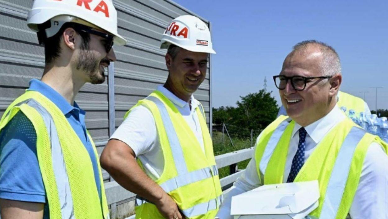 Министар грађевинарства, саобраћаја и инфраструктуре Горан Весић посетио је данас раднике који на високим температурама уграђују асфалт и том приликом им донео храну и воду.