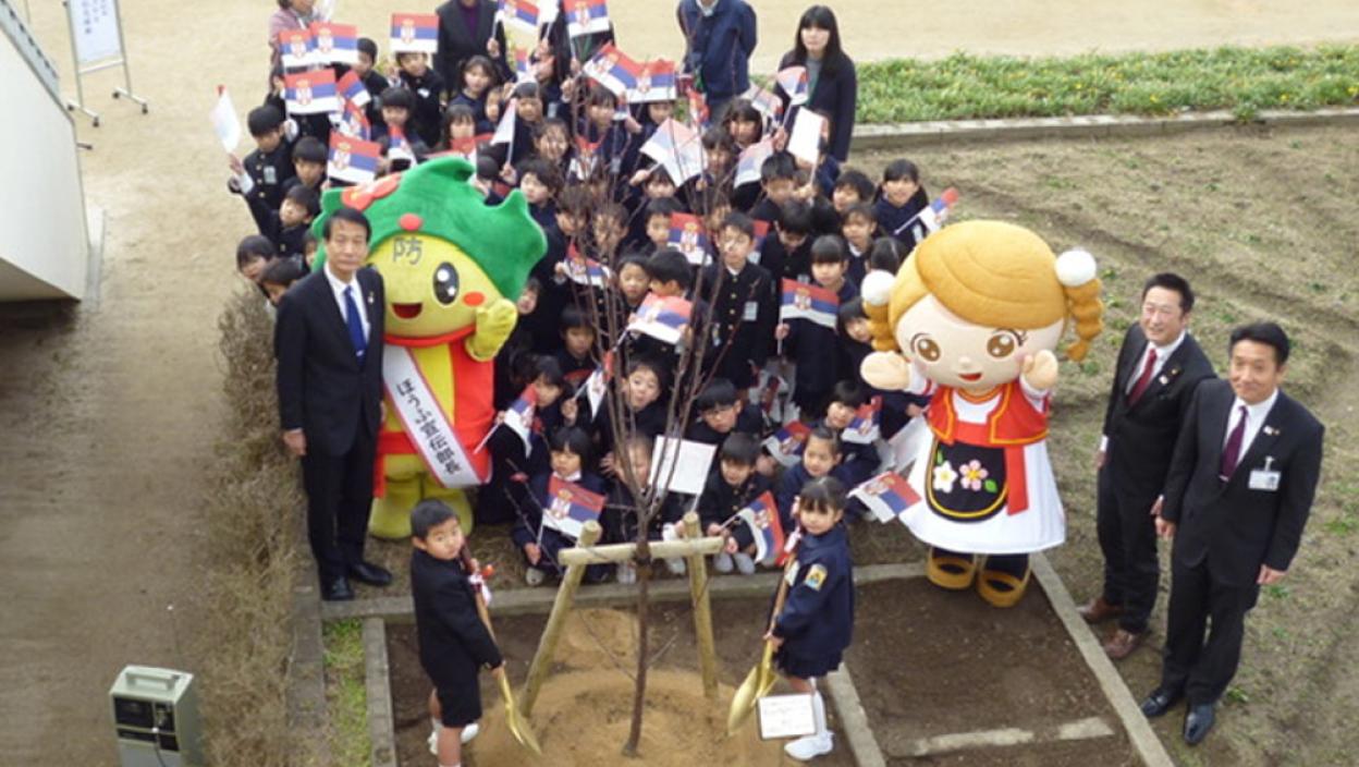 ЈАПАНСКИ ПРВАЧИЋИ САДИЛИ СРПСКЕ ШЉИВЕ НА СРЕТЕЊЕ: Прославили Дан Србије носећи српске тробојке