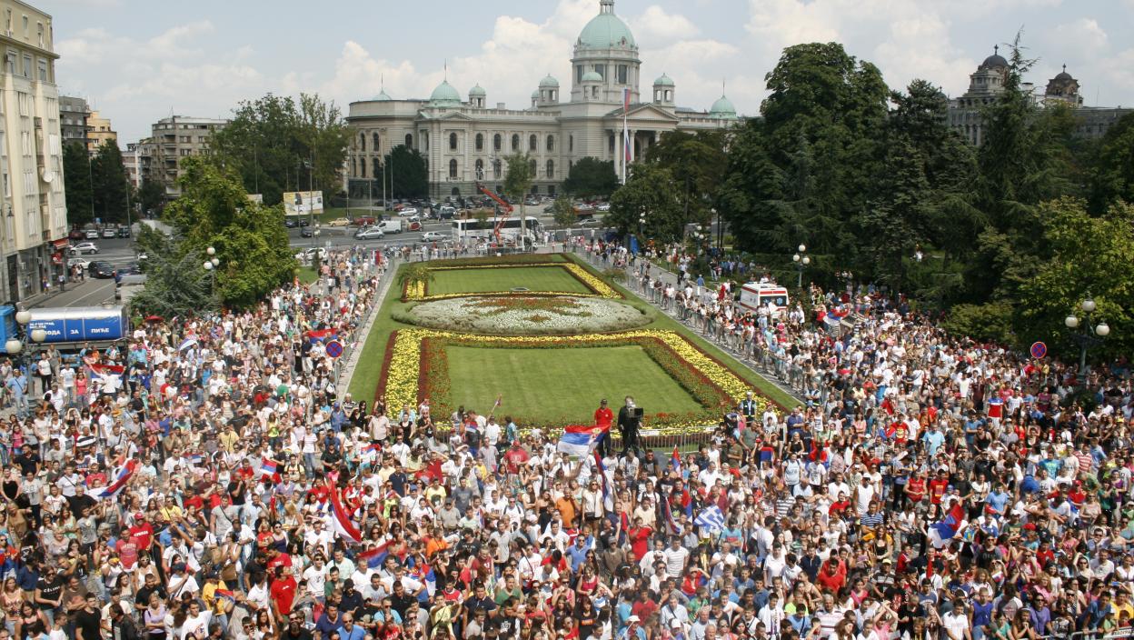 Српски ватерполисти дочекани су испред Скупштине Београда где су грађани поздравили европске прваке. Андрија Прлаиновић сматра да је све организовано на силу и жали због мале посете. Није ватерполистима страно да са златним медаљама изађу на балкон Скупштине Београда и поздраве људе.
