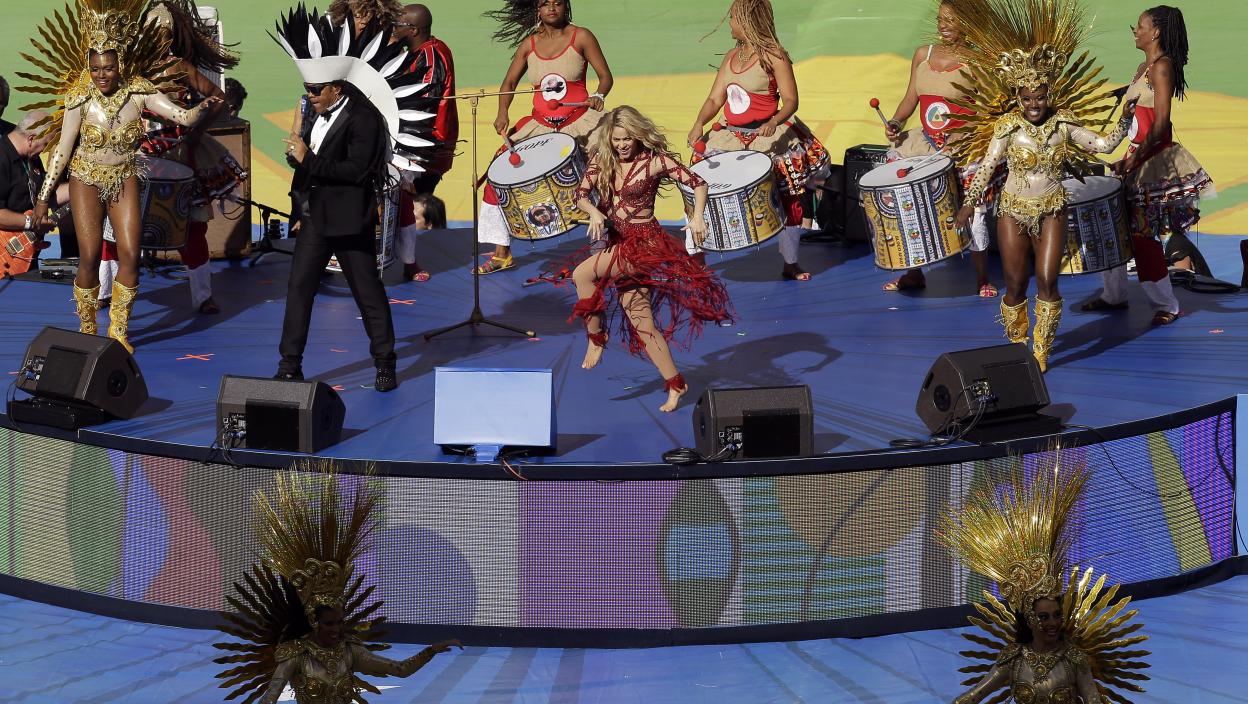 На спектакуларној церемонији на стадиону "Маракана" у Рио де Жанеиру публику су забављали колумбијска певачица Шакира која је отпевала незваничну химну Мундијала "Ла ла ла" заједно за домаћим извођачем Карлињосом Брауном. Осим њих, на затварању су наступили и чувени музичар Карлос Сантана, заједно са Вајклифом Жаном и Александреом Пиресом, као и бразилска певачица Ивет Сангало.