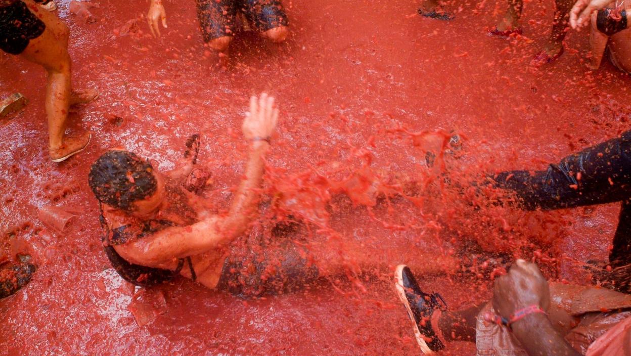 Иако сцене са ових фотографија подсећају на хорор филм, заправо се ради о чувеној "парадајз битки". Наиме, десетине хиљада људи учествовало је на годишњој забави гађања парадајзом "Томатина", која се одржава у шпанском граду Буњолу.