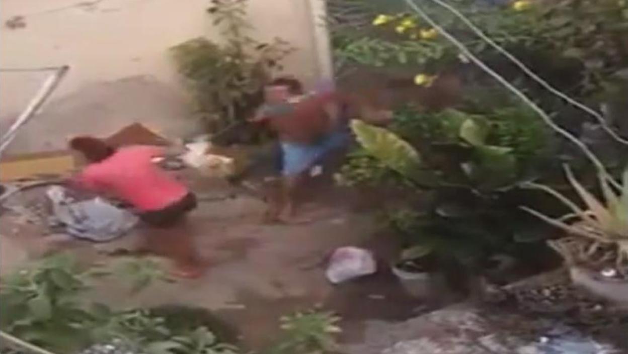 Овај човек је кренуо да удара жену штапом, али вероватно није очекивао епилог који је уследио: жена је почела да се брани тешком артиљеријом, то јест камењем које јој је било при руци. А онда је уследио завршни ударац: прецизно бачена цигла је звекнула напасника у главу и овај је пао као покошен. Тако се то ради.
