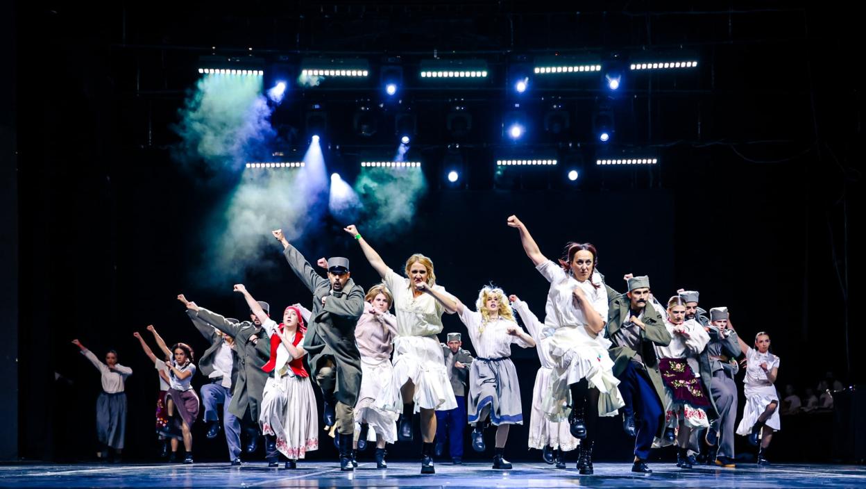 На сцени се смењују глума, плес и музика у мултимедијалном спектаклу.