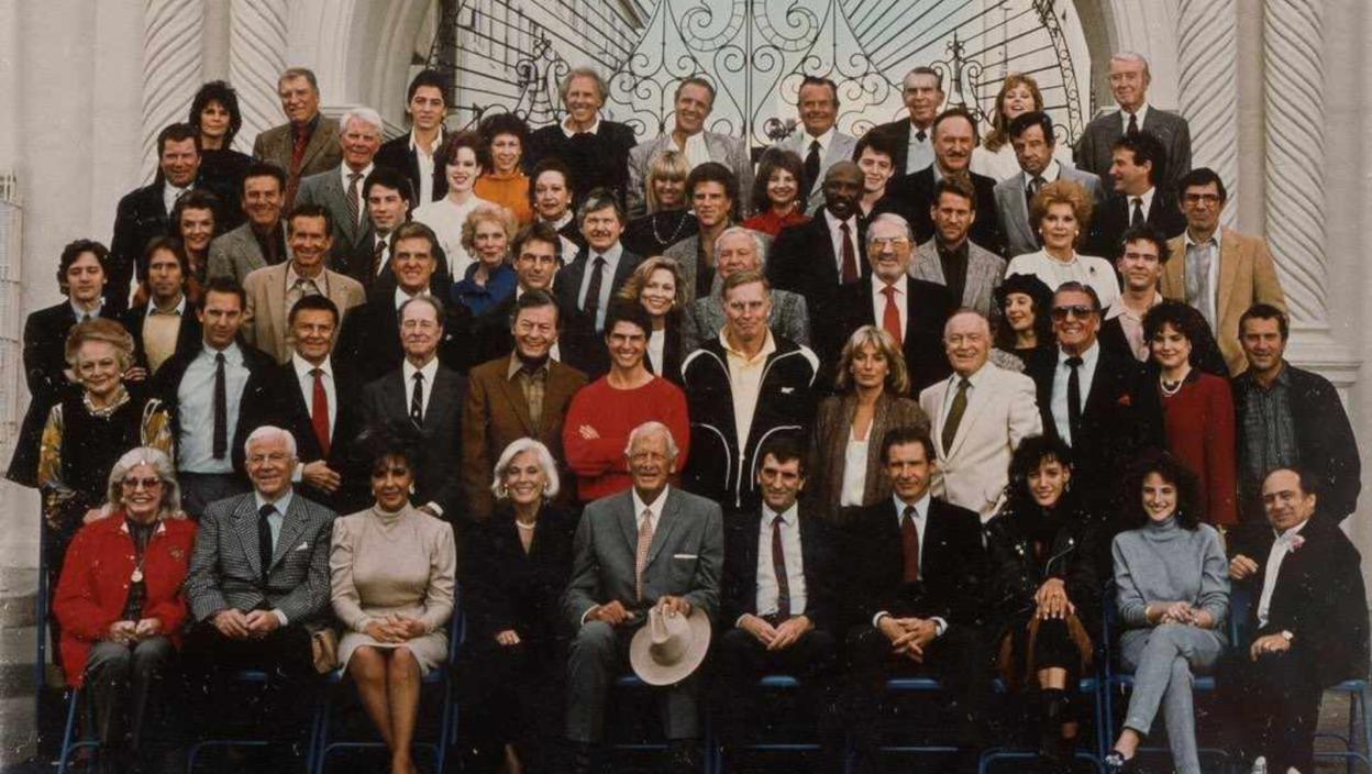 Ова легендарна фотографија снимљена је 1987. године испред славне капије Парамоунт Пицтуреса, поводом 75. годишњице студија. На овом свечаном окупљању, испред објектива нашле су се неке од највећих звезда које су обликовале историју Холивуда. Парамоунт Пицтурес, као један од најстаријих и најпознатијих филмских студија, одлучио је да обележи овај посебан тренутак окупљањем својих иконичних глумаца и глумица, стварајући фотографију која ће заувек остати део филмске легенде.