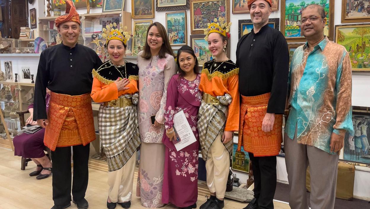 Плесна трупа амбасаде Малезије “Рајске птице” (Chenderawasih) са играчима обученим у традиционалне малежанске ношње одиграла је два плеса – плес добродошлице који се изводи на свечаностима, када девојке у рукама држе корпу са цвећем и плес запин – традиционални плес са југа Малезије. Овом приликом су служени и малежански специјалитети, а неке је лично за госте припремила отправница послова.