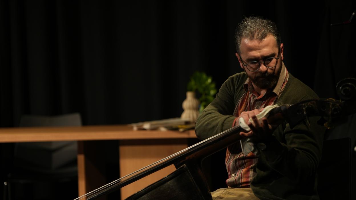 Монодрама у режији Владана Ђурковића исповест је музичара који опширно излагање о свом вољеном инструменту постепено претвара у вапаје душе. У искрену и огољену емоцију, у потребу да пронађе излаз из своје муке и да буде виђен, препознат. Јер се контрабасиста целог свог живота налази иза свих, као што се и контрабас у оркестру налази у последњем реду. Млади глумац Ђорђе Крећа је својим талентом искорачио напред и обасјао целу позорницу, а након извођења је поручио да светлост рефлектора првенствено треба бити усмерена на хуману мисију Фондације Mozzart.