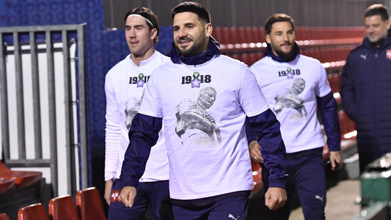 Српски репрезентативци истрчали су на терен у мајицама на којима се налази лик српског војводе Петра Бојовића, који је био шеф Врховне команде током Албанске голготе.