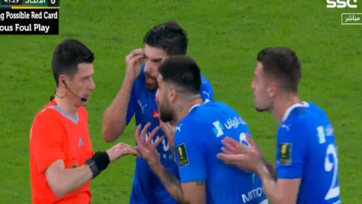 Нападач Ал Хилала је добио и жути картон због неспортског понашања у 13. минуту судијске надокнаде првог дела игре који је обиловао узбуђењима.