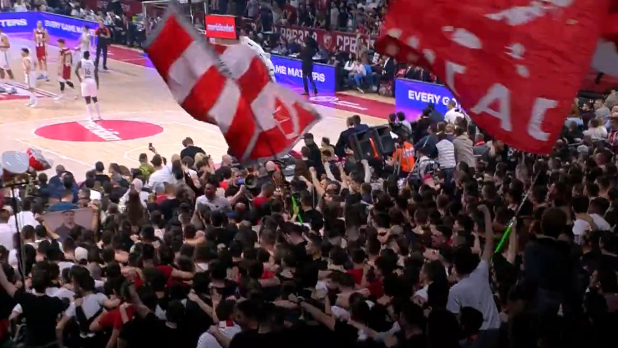 Звезда није најбоље започела меч пошто за шест минута игре није постигла ниједан кош, док је Реал Мадрид имао серију од 14 поена. Ипак, верни навијачи су увек ту за свој тим.