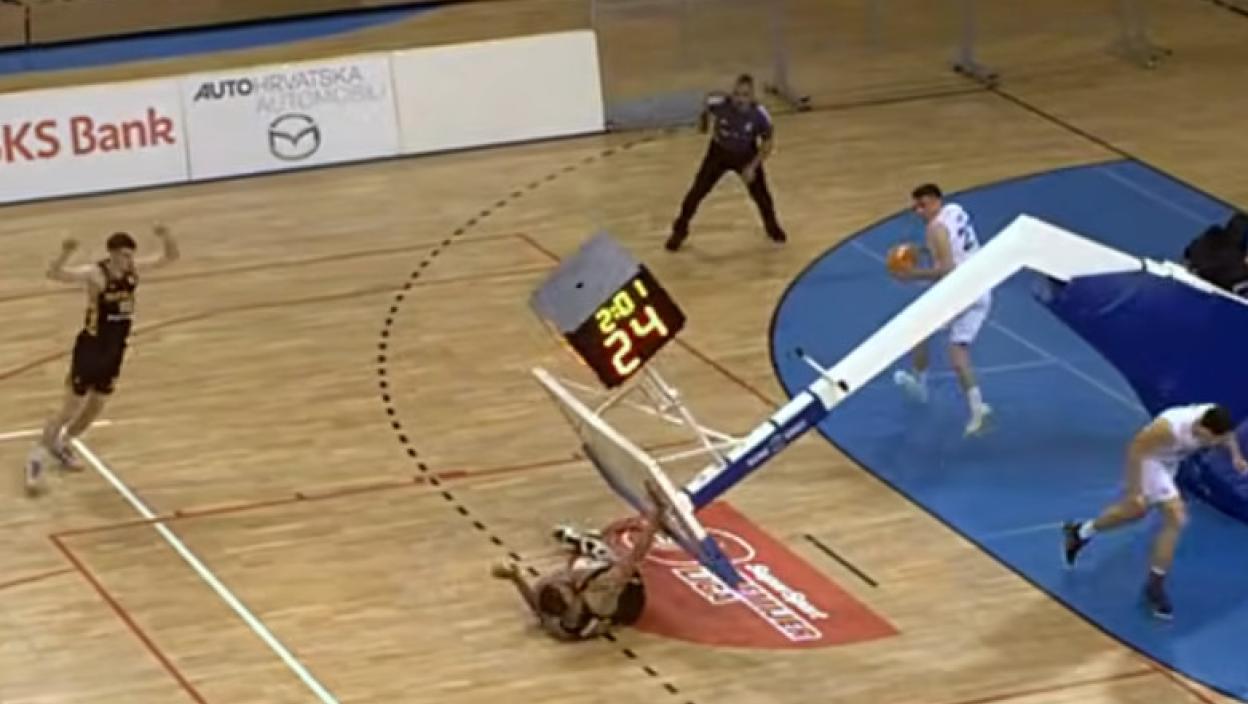 Језива сцена у Хрватској: Играч једва извукао живу главу - Кош се срушио и пао на њега (ВИДЕО)