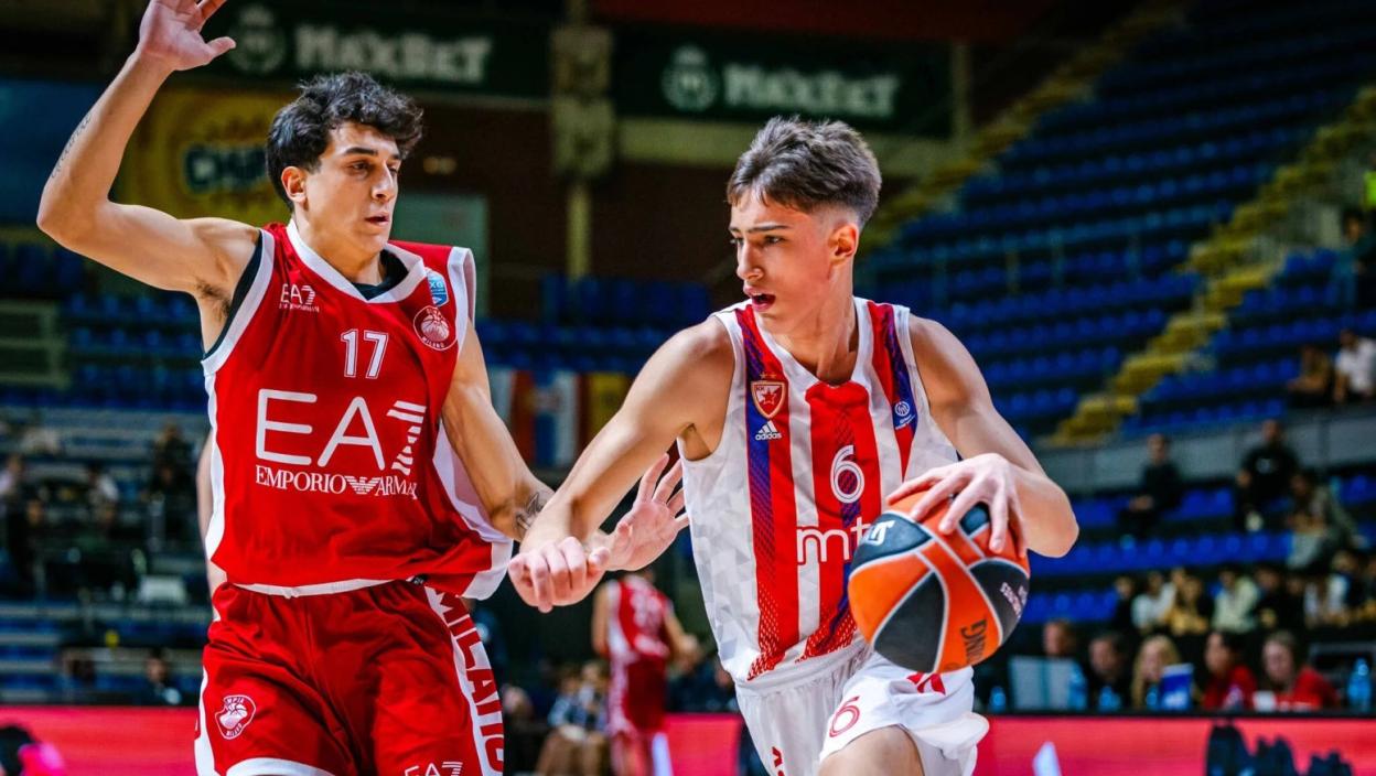 Кошаркаши Црвене звезде до 18 година разбијени су резултатом 96:74 од екипе Арманија из Милана на Евролигином "NextGen" турниру у Београду.