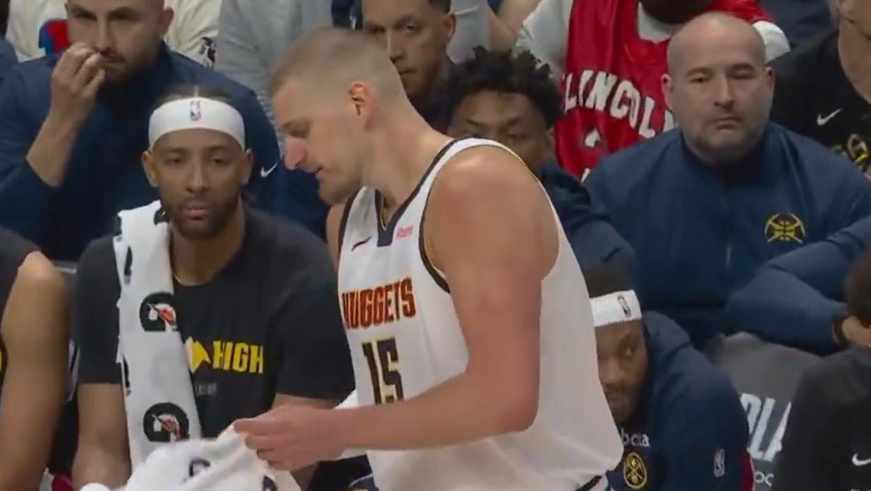 Јокић је доживео повреду носа који је почео да крвари, али је центар Нагетса брзо решио ствар и вратио се у игру без проблема.