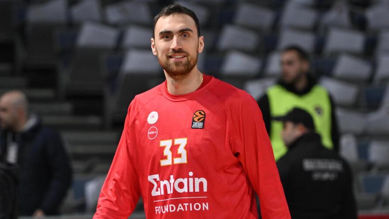 Кошаркаши Црвене звезде дочекују Олимпијакос у 15. колу Евролиге. Пред меч, играчи су изашли на паркет да се загреју, а један он њих је и српски центар Никола Милутинов.