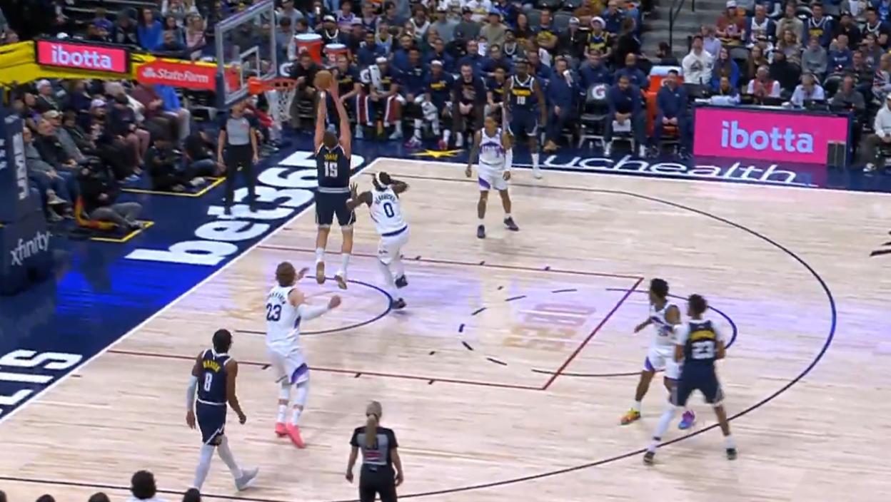 Видео је Јокић да га његов чувар не мотри, показао је руком ка Џамалу Мареју, а онда му је Канађанин бацио "лоб" пас у висини коша. Јокић је скочио и спровео лопту у мрежу, а због његовог закуцавања читава клупа Нагетса исте секунде је скочила да слави.