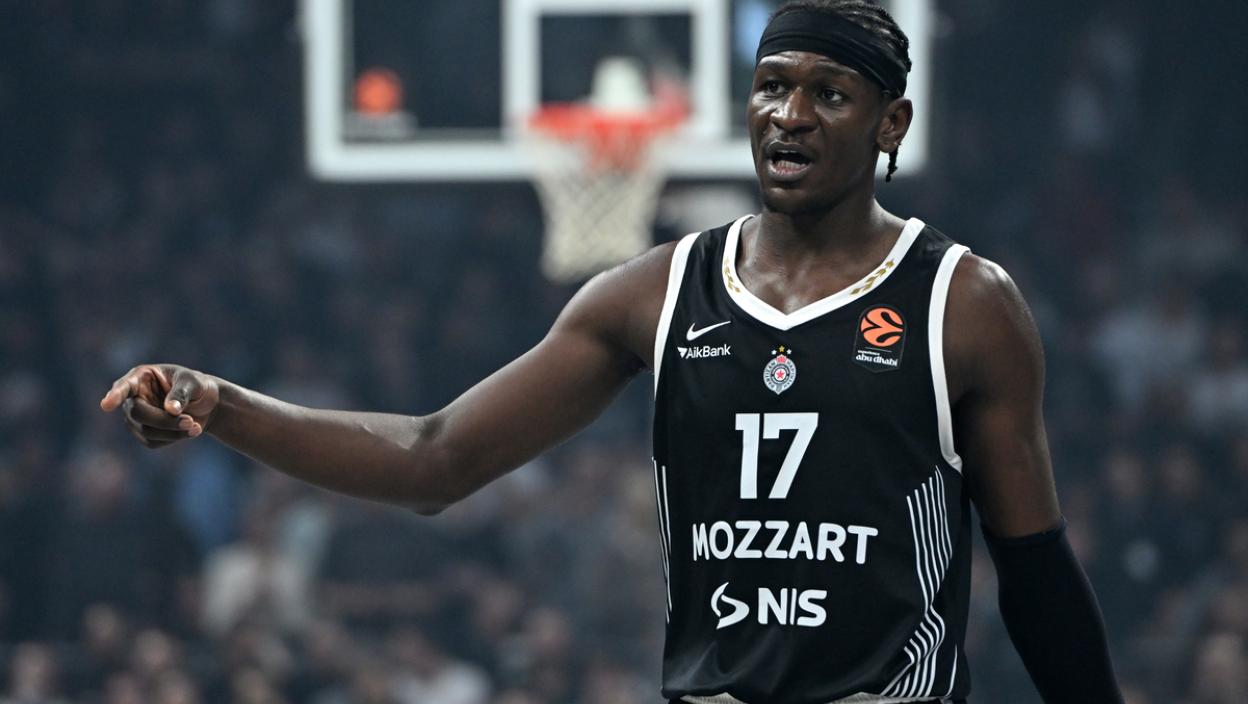 Антикошарка у овим тренуцима. Закуцава капуљачом Фернандо, одбранио се Партизан.