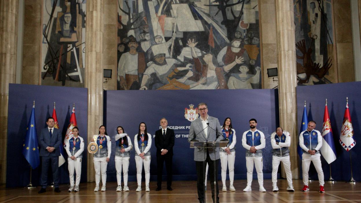 - Наше боксерке исписале су нове странице богате историје српског спорта. Остварили су резултат какав никада до сада Србија није забележила - пет бронзаних и једну златну медаљу - истакао је Вучић у Председништву Србије.