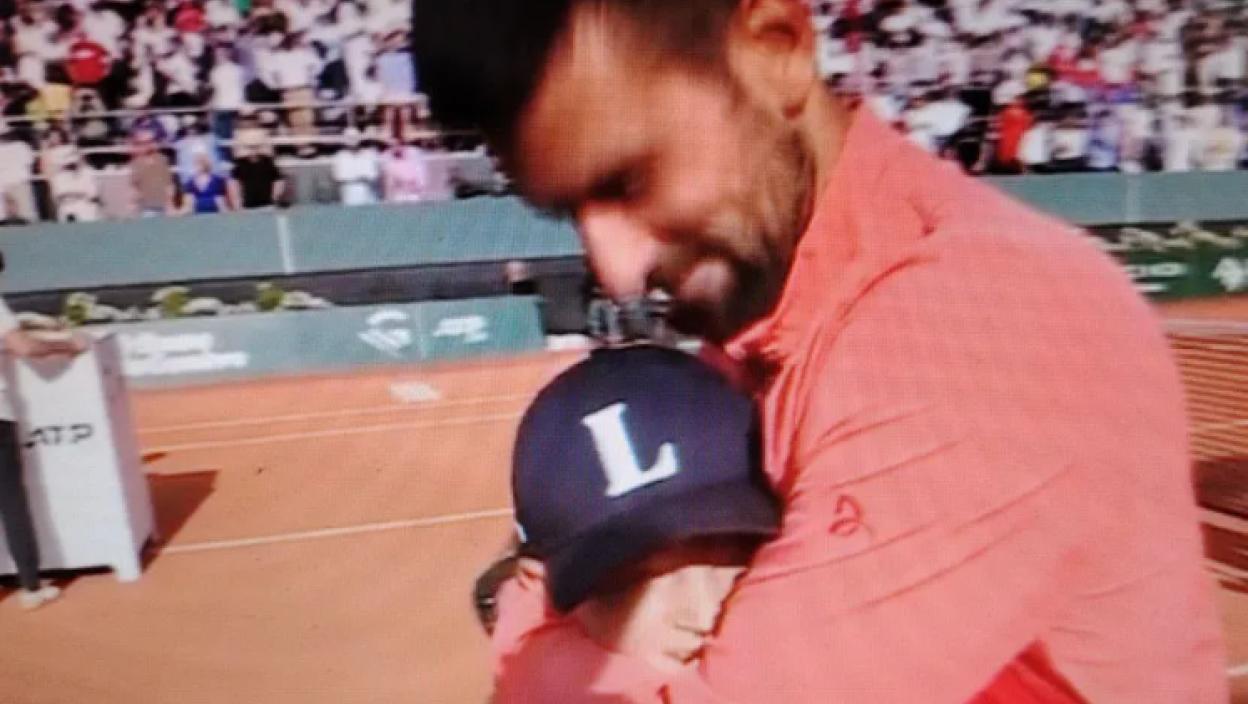 У тренуцима док је говорио пред камерама, Новак је изненада застао – поред њега се појавио његов син Стефан, који је утрчао на терен да честита свом тати на историјском успеху и 100.титули.