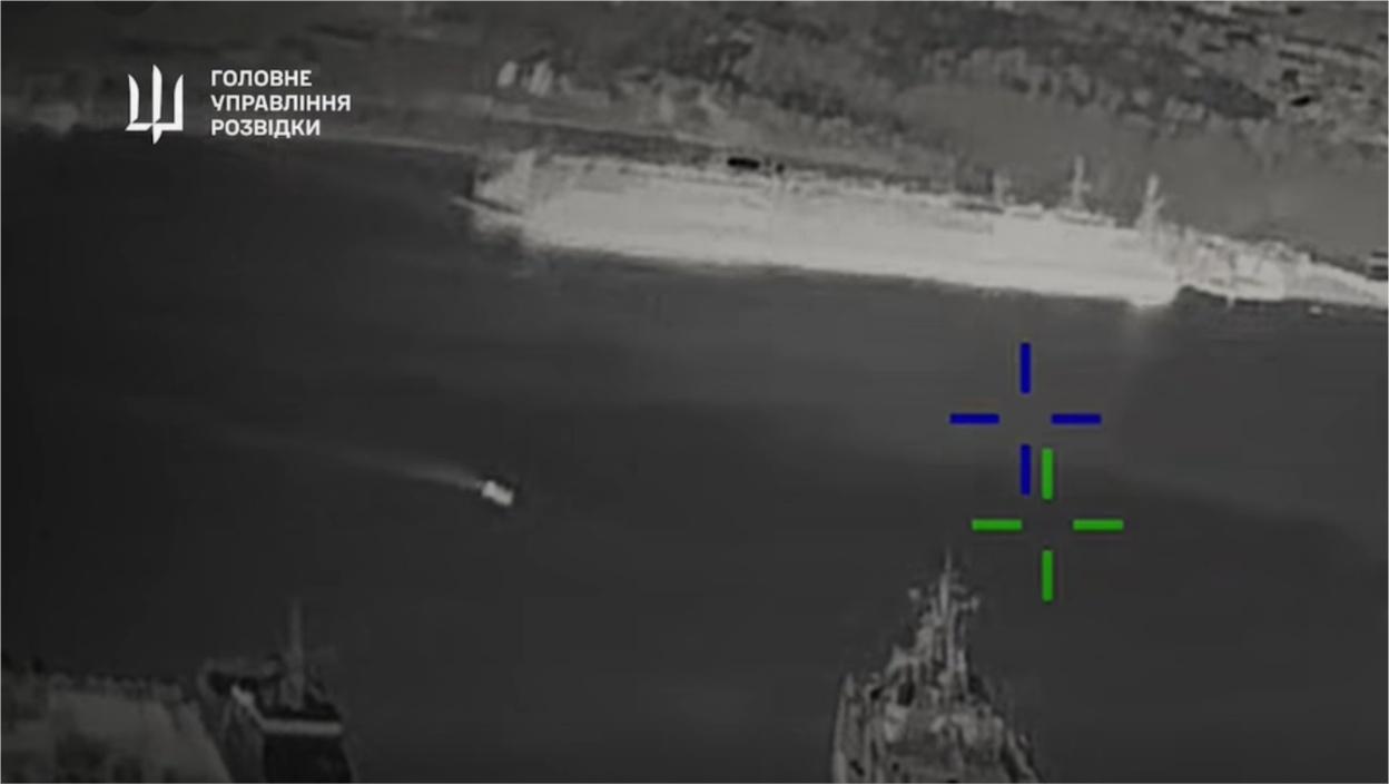 Украјинска војна обавештајна служба (ДИУ) објавила је снимак напада дроновима на руске велике десантне бродове "Јамал" и "Николај Филченков" извршен током ноћи између суботе и недеље.