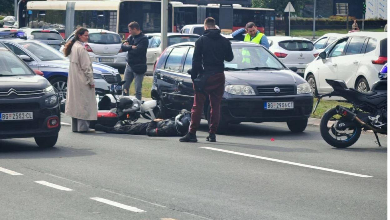 (ФОТО) Несрећа на Бранковом мосту: Мотоциклиста лежи на земљи, саобраћај потпуно ПАРАЛИСАН - људи приморани да иду пешице