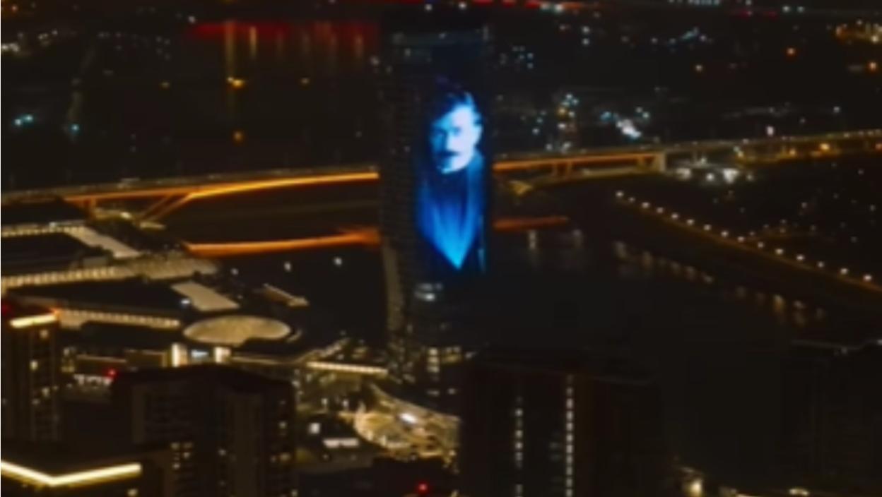 На фасади највише зграде у Србији и региону емитована је јединствена пројекција, подсећајући на дела овог великог књижевника, саопштио је Белграде Waterfront (BW).