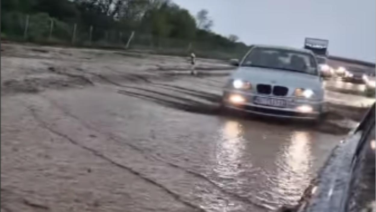На ауто-путу код Смедерева након јаких падавина праћених градом створила се поплава, а саобраћај је на овом делу пута у колапсу.