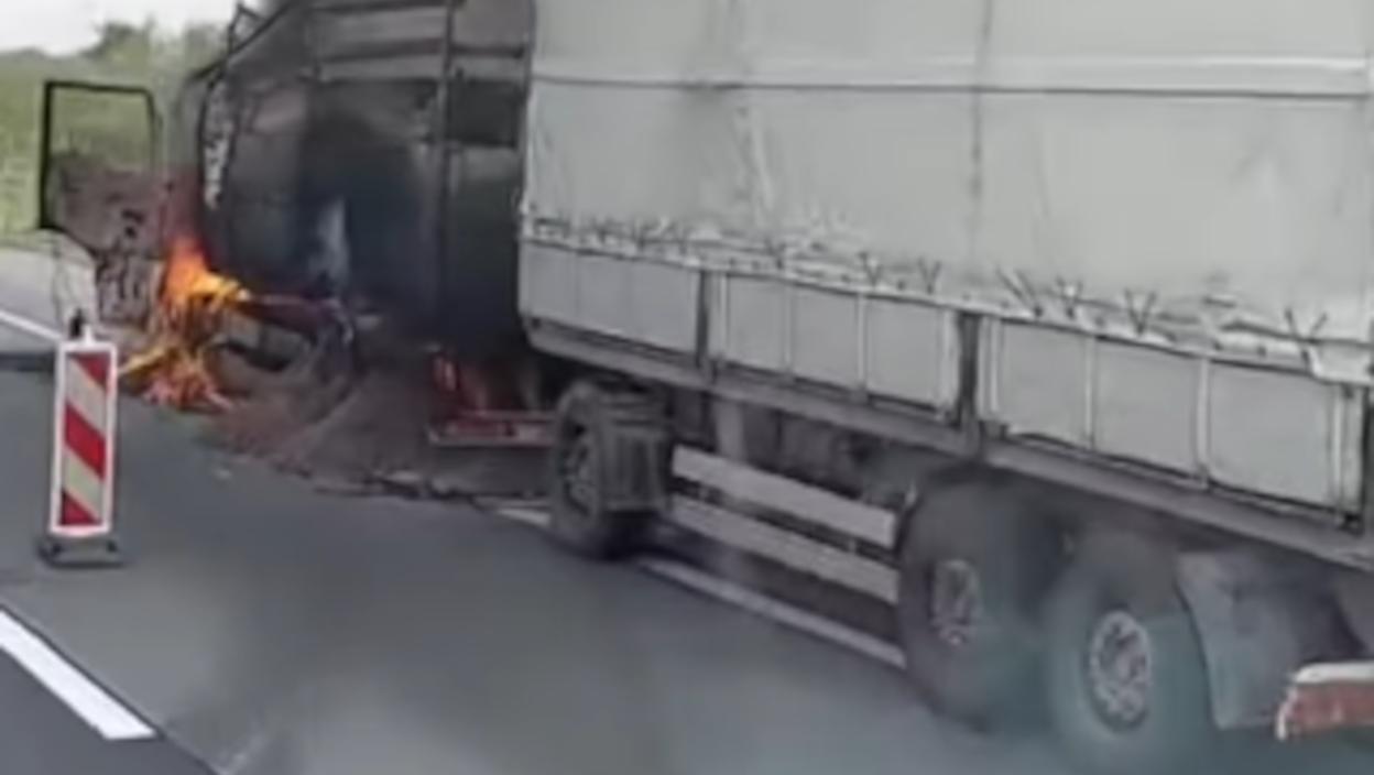 На ауто-путу између Пећинаца и Руме дошло је до инцидента када се запалио камион.