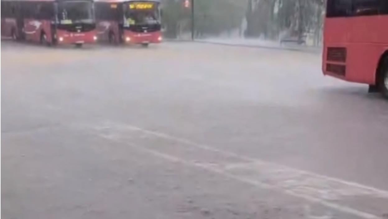 Киша лије што би се народским речником рекло "као из кабла", а ни град се не шали, с обзиром да се на снимку може видети да је величине кликера.