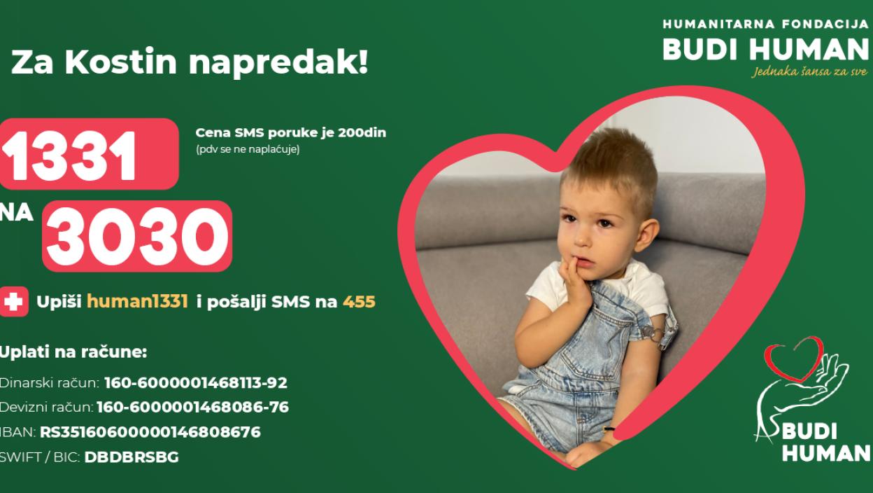Позивамо све људе добре воље да подрже акцију и помогну малом Кости да добије шансу за бољи живот.
