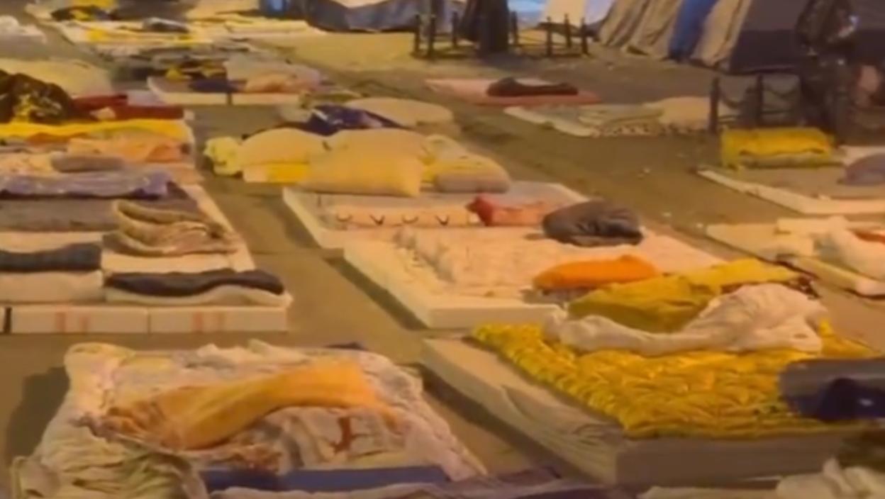 Наиме, како се може видети на видеу који се дели друштвеним мрежама, искоришчено је 2.000 душека, а када се узме у обзир просечна цена обичног душека која може бити и 3.000 динара - рачуница каже да је само за душеке (а да не рачунамо и цене јастука и јоргана који се види на њима) издвојено око 50.000 евра.