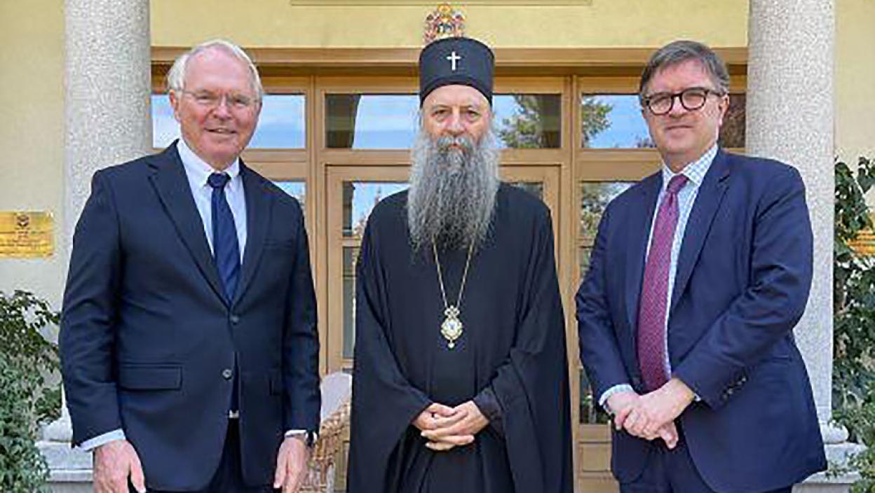 Патријарх српски Порфирије примио је у Патријарашкој резиденцији у Београду помоћника секретара Бироа за европске и евроазијске послове Стејт департмента Џејмса О’Брајана и амбасадора САД у Србији Кристофера Хила.