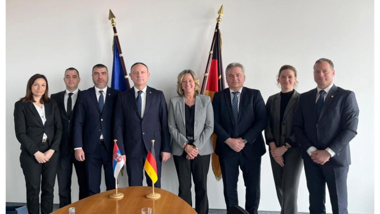 У наставку службене посете Федералној полицији Савезне Републике Немачке, директор полиције, генерал полиције Драган Васиљевић, начелник Управе криминалистичке полиције Марко Кричак и начелник Управе за технику Горан Цолић, састали су се данас са потпредседницом Федералне криминалистичке полиције (ВКА) Мартином Линк и највишим руководиоцима организационих јединица ВКА.