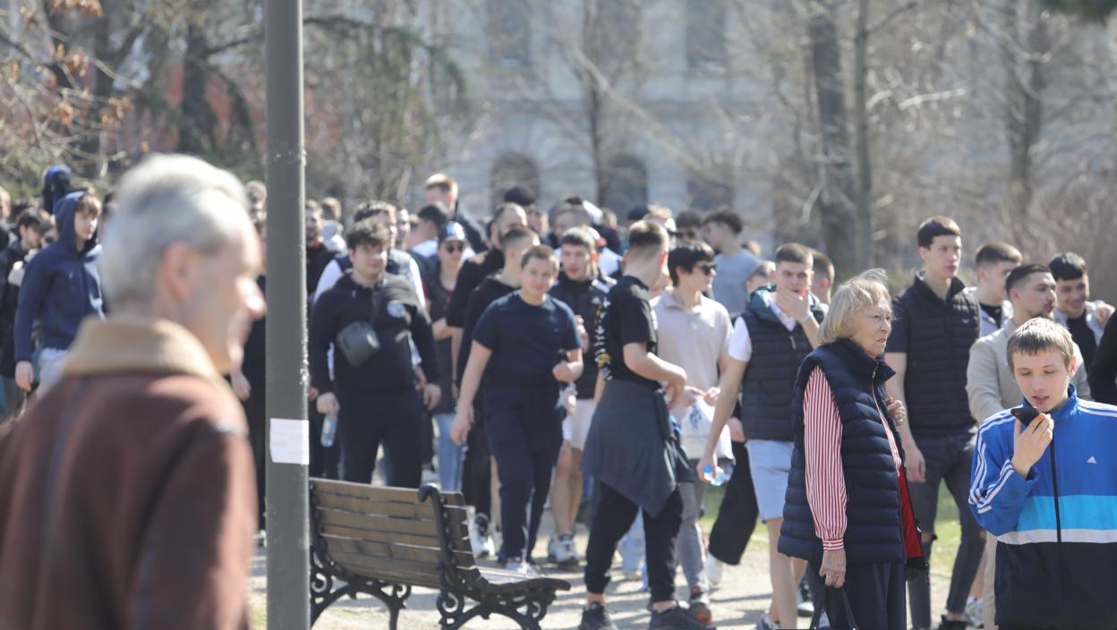 У Пионирски парк, где студенти протестују за наставак наставе, управо стиже велики број нових присталица.