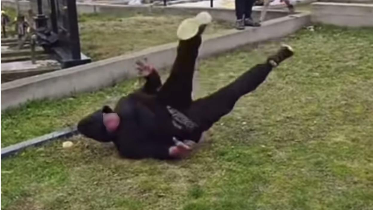 Према ономе што се може видети, мушкарац је, наводно под дејством алкохола, лежао и ваљао се по земљи, правећи несвакидашње покрете и игноришући атмосферу пијетета која је тог дана владала на гробљу. Док су га поједини присутни посматрали у неверици, чули су се и коментари праћени смехом.