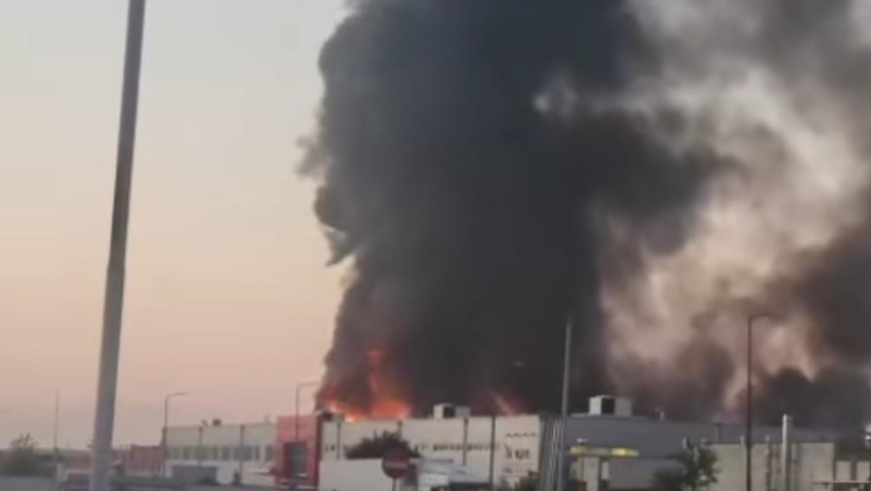 Велики пожар избио је у фабрици боје и лакова "Невена колор" у Лесковцу. Сво расположиво људство и ватрогасна возила су на терену.