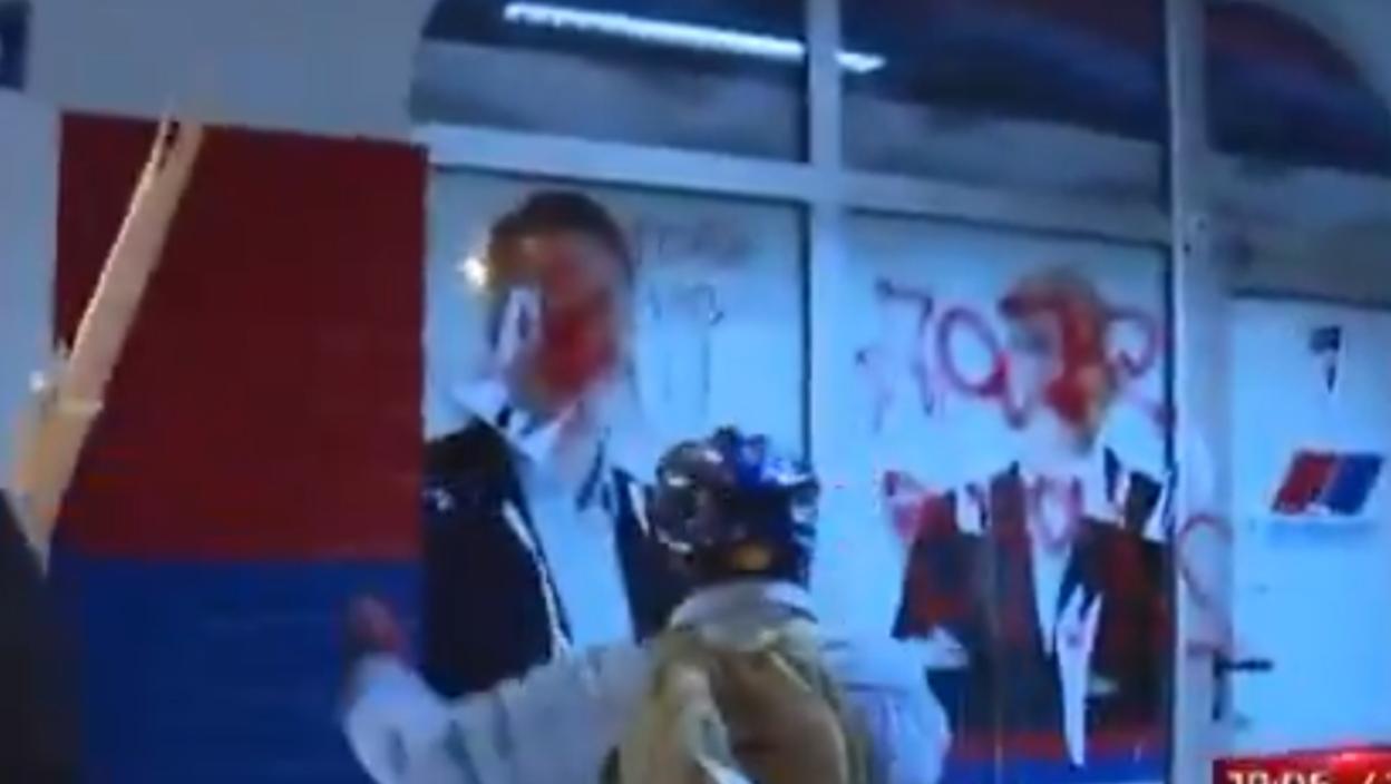Министарство унутрашњих послова Републике Србије саопштава да су полицијски службеници ПУ Нови Сад за време и након одржавања скупа у Новом Саду предузели мере и радње према следећим лицима: С.Л. (42), који је доведен зато што је металном шипком ломио средства видео-надзора, односно камеру која се налазила на спољном зиду Градске куће.