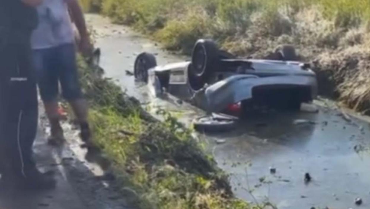 На снимку који се појавио на друштвеним мрежама види се да је возило завршило у каналу поред пута.